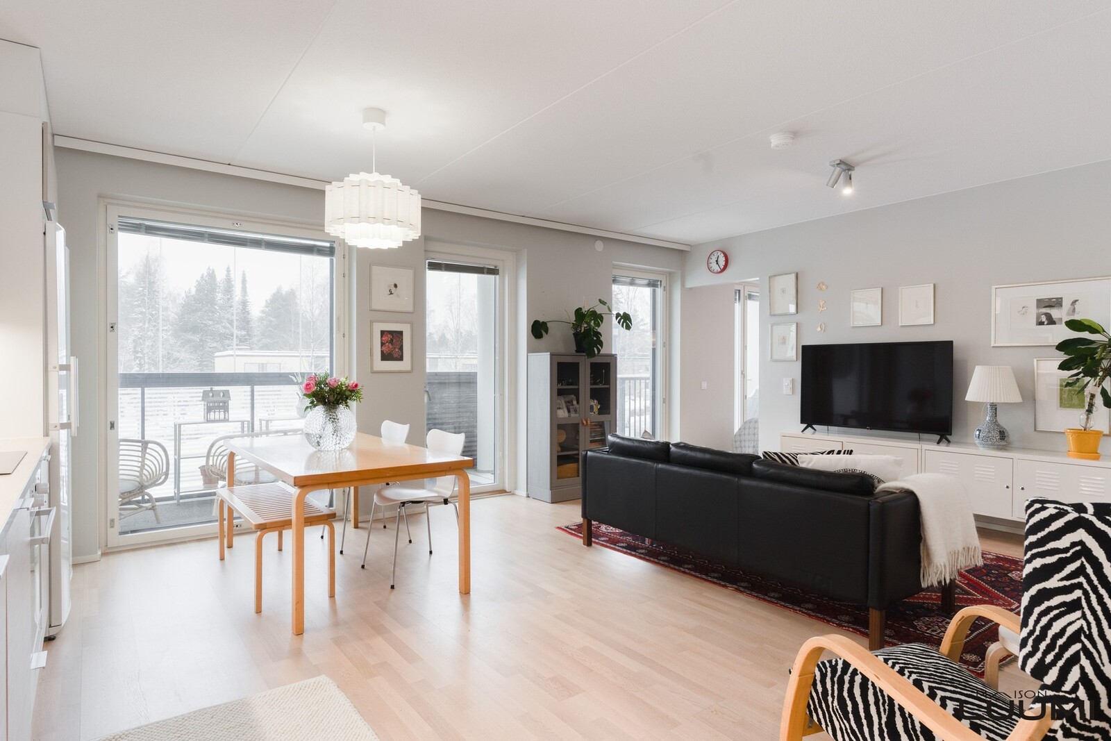 | Kuvaus: | Avaraa tilaa avokeittiön ja ruokailutilan kanssa, käynti molemmille parvekkeille. |