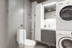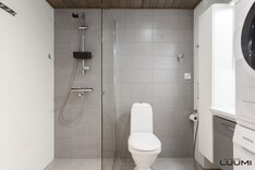 | Kuvaus: | Tilavassa kylpyhuoneessa suihku, taittuva suihkuseinä, wc-istuin, käsienpesuallas, allas- ja peilikaappi, kylpyhuonekaappi ja pesukoneliitäntä (torni mahtuu). Saumausten Vevex-käsittely tehty 02/2026. Kylpyhuoneessa sähkötoiminen lattialämmitys. |