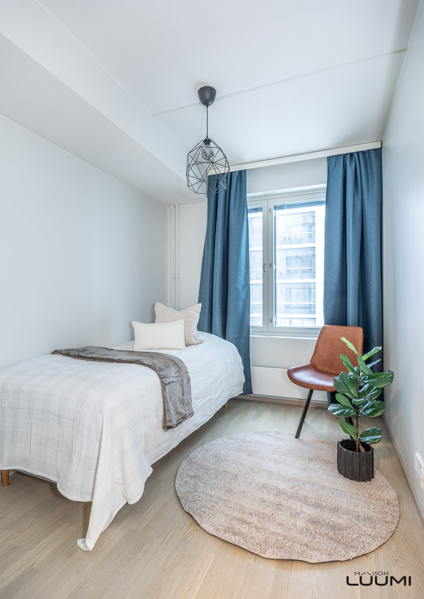 | Kuvaus: | Kaksi makuuhuonetta, molemmissa vaatekaapit, ikkunat itään. Toisesta käynti omalle parvekkeelle. |