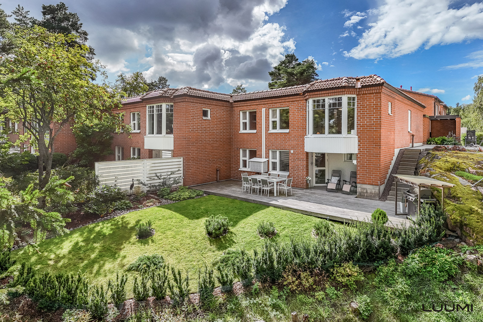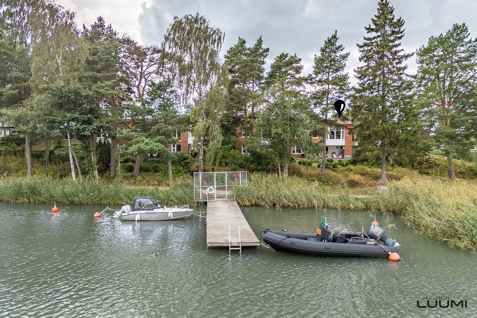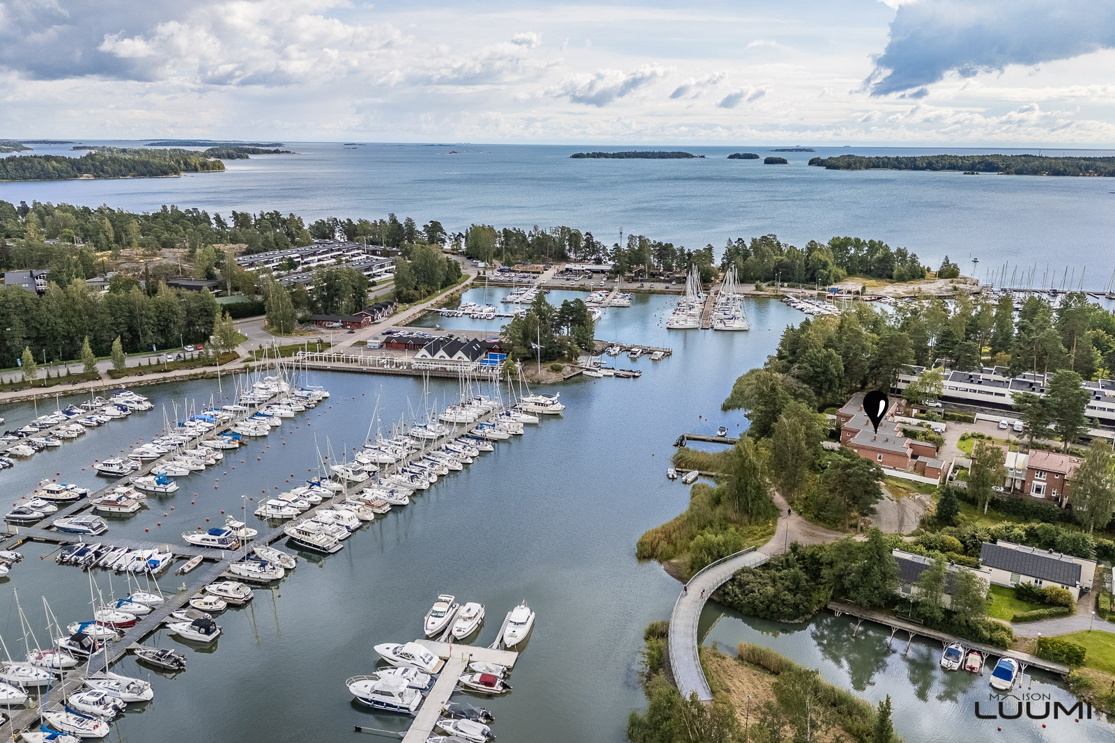 Kaunis punatiilitalo tuo mieleen englantilaisen maalaismaiseman ja se sopii merelliselle rinnetontille täydellisesti. Tasokas huoneistoremontti on tehty vuonna 2018; mm. upea KVIK-keittiö ja raikkaat kylpyhuoneet ovat täysin uudistettu ja varustettu vastaamaan nykypäivän toiveita. Kattava remontti ei rajoittunut sisätiloihin vaan samalla uudistettiin upea piha-alue katseenkestäväksi. Aurinkoisia terassialueita on nyt kahdessa tasossa, ja kauniit istutukset kehystävät nurmialuetta. Meri on läsnä jokaisessa päivässä ja oman veneen saa parkkiin yhtiön laituriin.