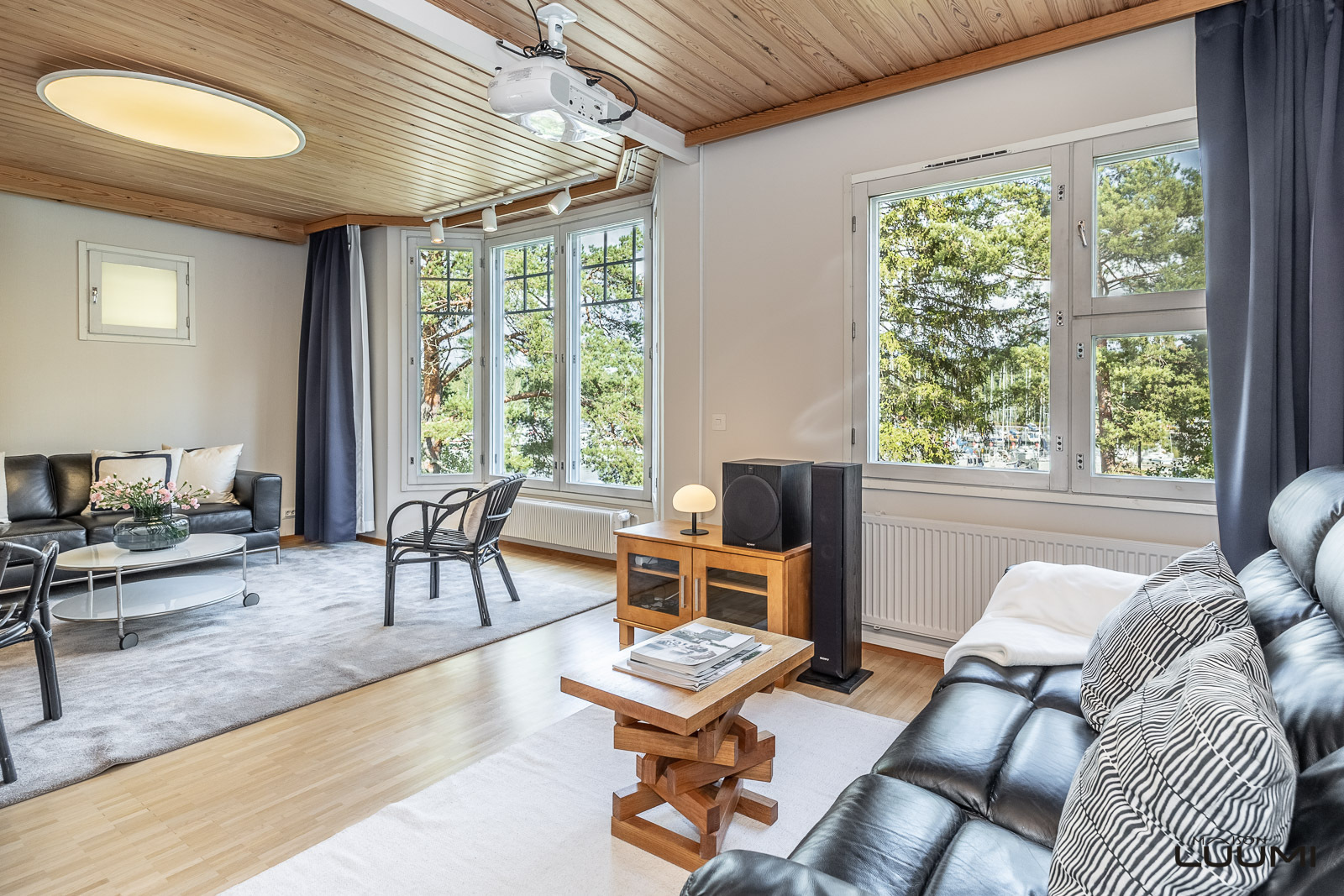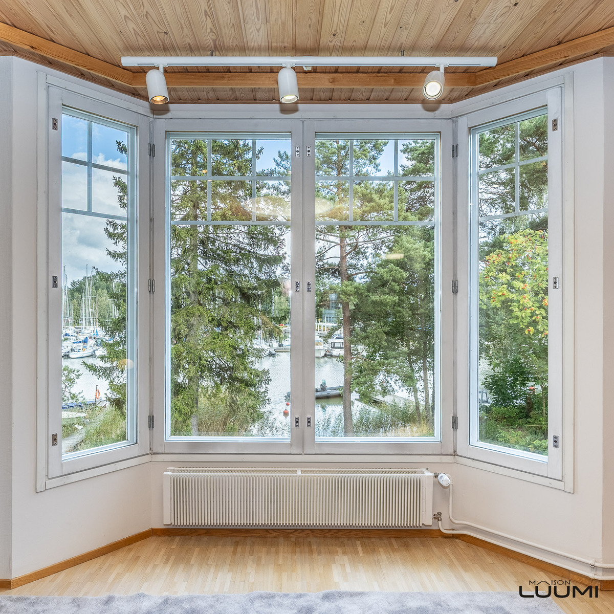| Kuvaus: | Olohuone ylellisen avaraa ja valoisaa tilaa. Erkkeristä kauniit satamamaisemat. |