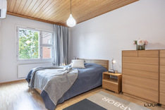 | Kuvaus: | Kaksi makuuhuonetta yläkerrassa. Olohuoneen yhteydessä oleva tila on alkuperäisessä pohjakuvassa makuuhuone. Toisen makuuhuoneen yhteydessä on vaatehuone ja toisessa on vaatekaapistot. Alakerran askarteluhuone soveltuu myös makuuhuonekäyttöön. |