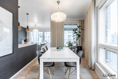 | Kuvaus: | Valoisa yhtenäinen tila keittiön ja ruokailutilan kanssa. Käynti lasitetulle länsiparvekkeelle. |