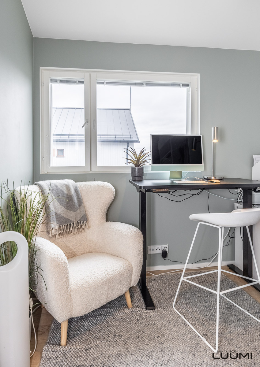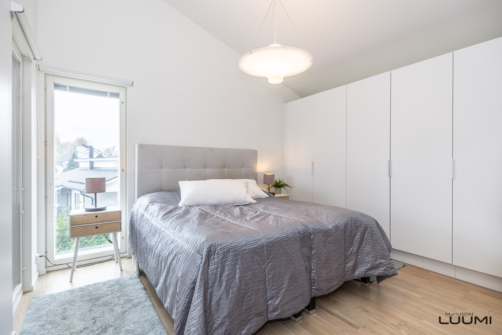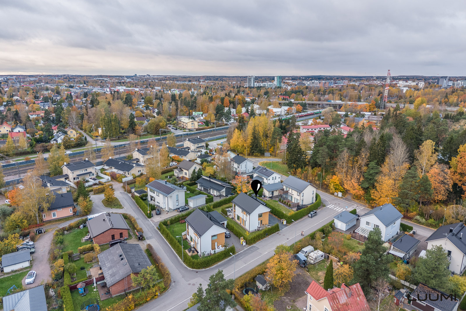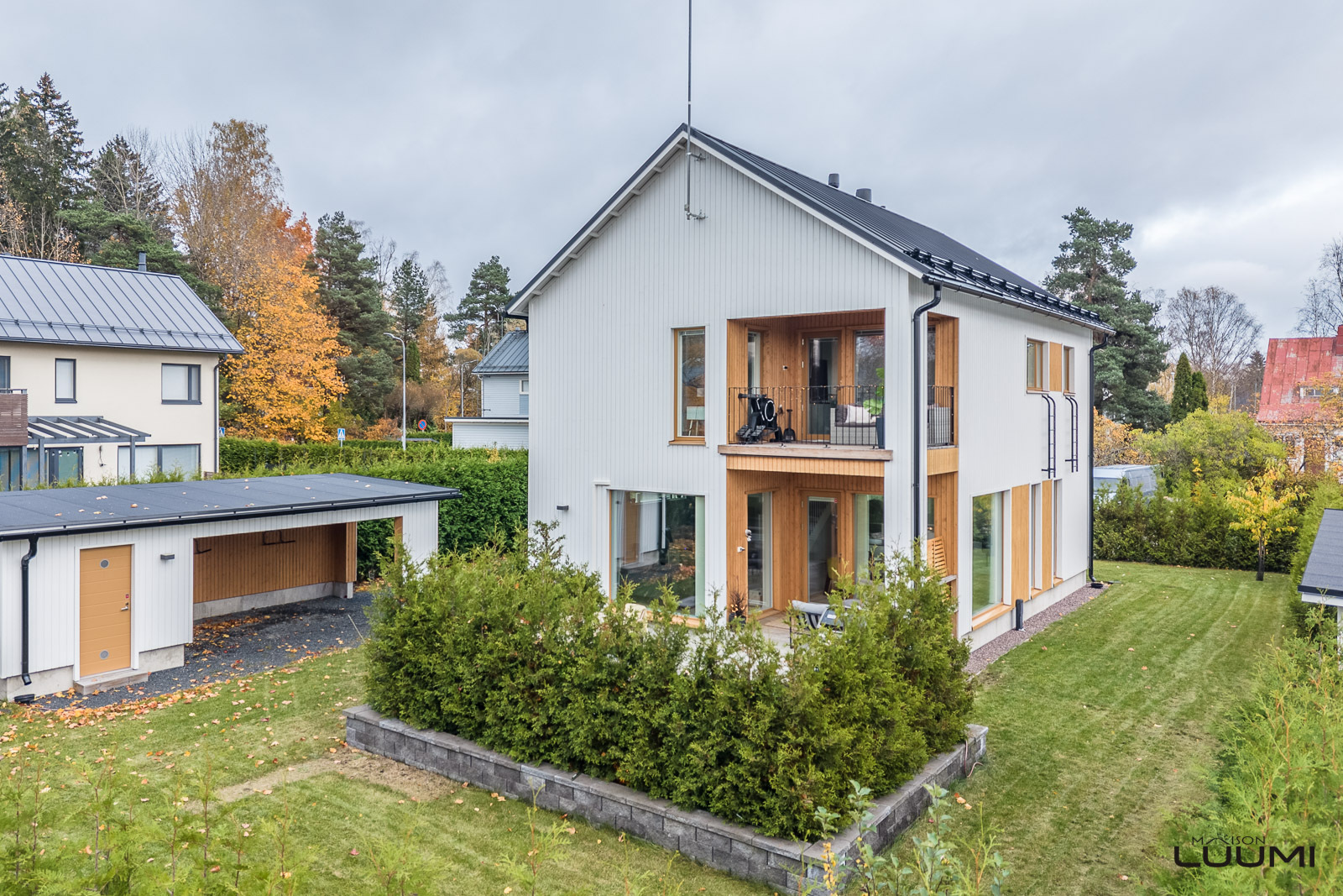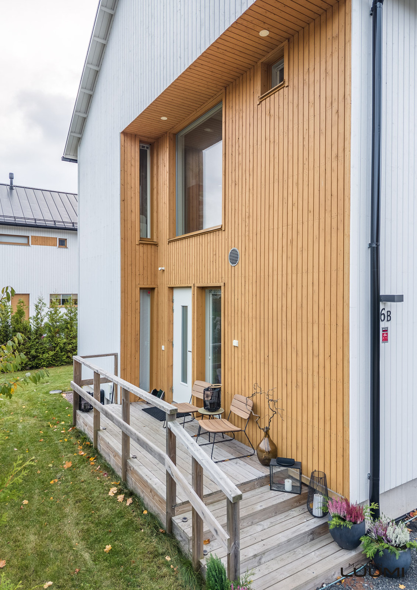Talo sijaitsee helppohoitoisella tontilla päättyvän tien varrella. Kiinteistömuotoinen asuminen on sovittu selkeästi erillisellä hallinnanjakosopimuksella ja tonttiosuus on mahdollista lunastaa omaksi. Puhdaslinjainen kokonaisuus, jonka lämmitysmuotona on poistoilmalämpöpumppu. Huoletonta asumista ilman remonttihuolia!