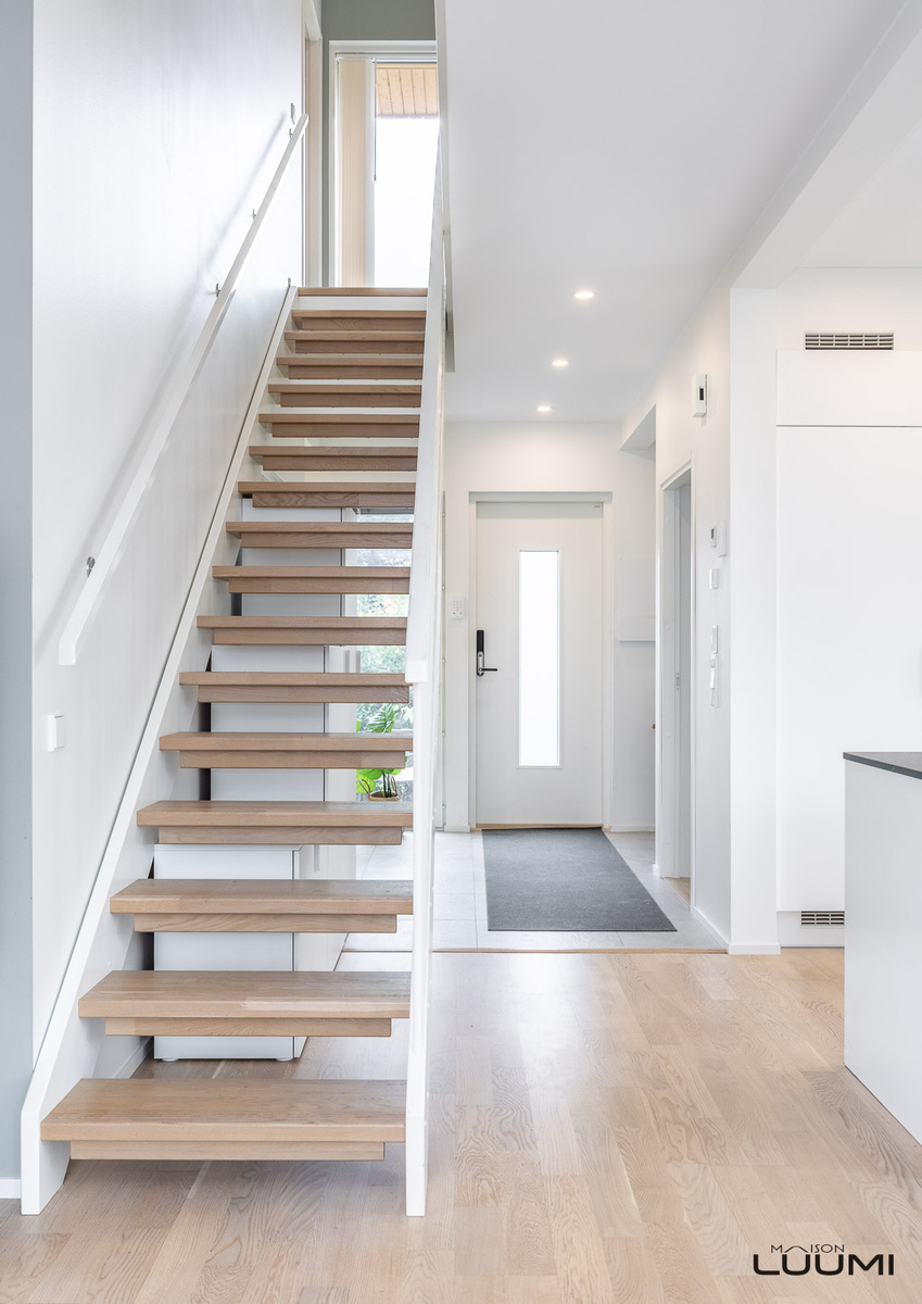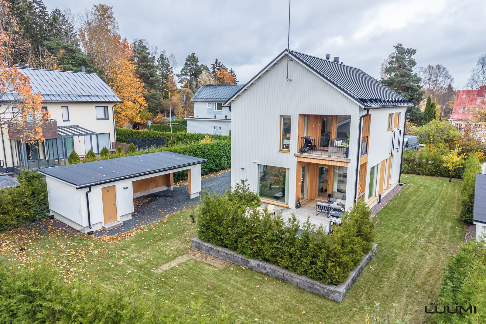 Valoisa ja lämminhenkinen, skandinaaviseen tyyliin toteutettu energiatehokas omakotitalo huolettomaan asumiseen vuosikymmeniksi eteenpäin.