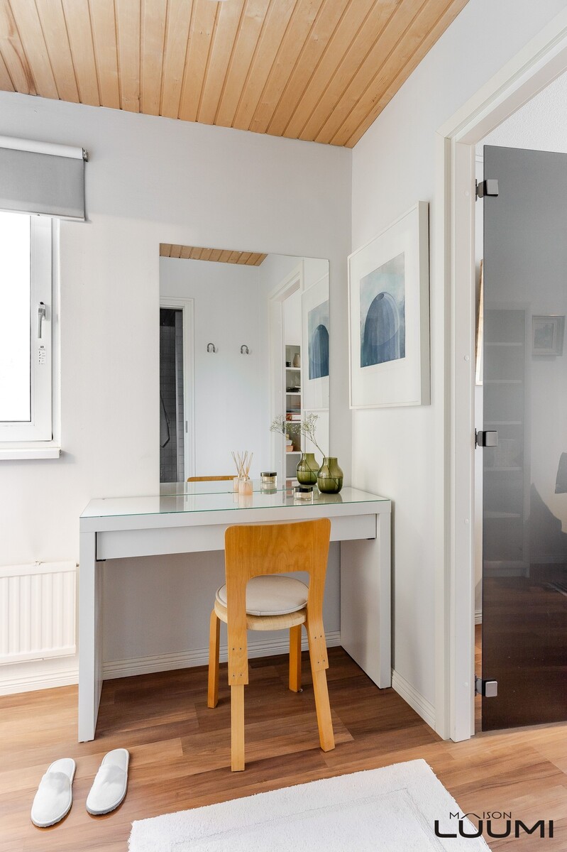 | Kuvaus: | Kolme makuuhuonetta, päämakuuhuoneen yhteydessä vaatehuone. |