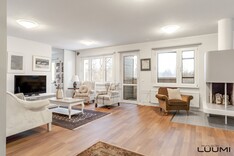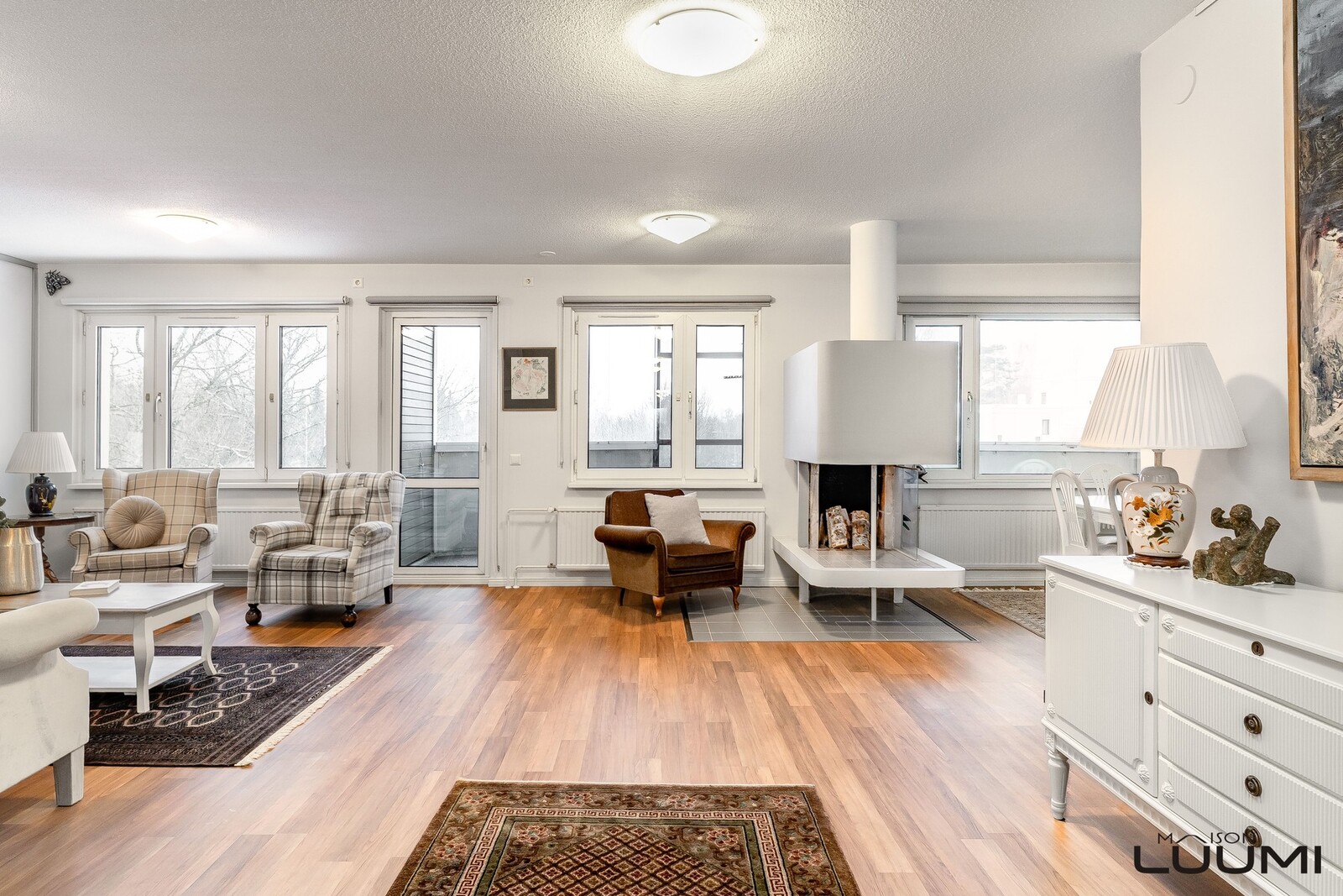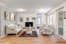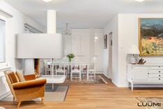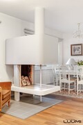 | Kuvaus: | Olohuone ja ruokailutila muodostavat yhtenäisen kokonaisuuden. Tilojen väliin sijoittuva takka jakaa tilaa kauniisti ja tuo tunnelmaa. Käynti lasitetulle parvekkeelle. |