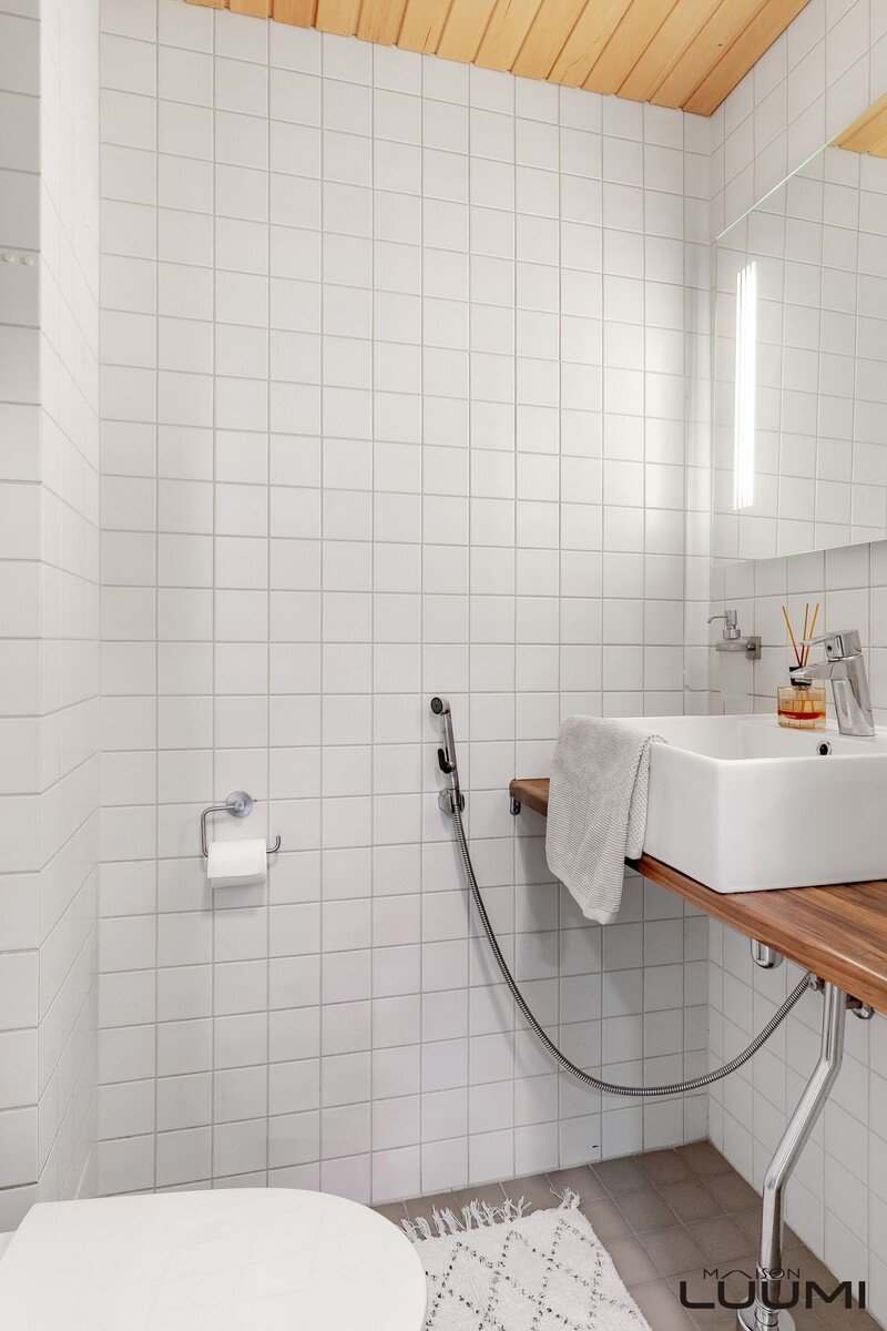 | Kuvaus: | WC-istuimen lisäksi bideesuihku, käsienpesuallas ja peili. Lisäksi WC-istuin toisessa kylpyhuoneessa. |
