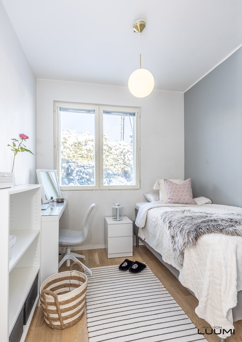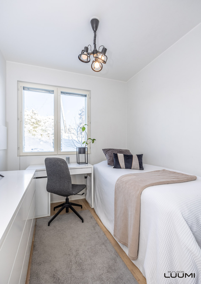 | Kuvaus: | Kolme makuuhuonetta, joissa kahdessa vaatekaapistot. Kolmannen makuuhuoneen yhteydessä vaatehuone. |