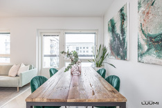 | Kuvaus: | Yhtenäistä ja avaraa tilaa ruokailutilan kanssa. |